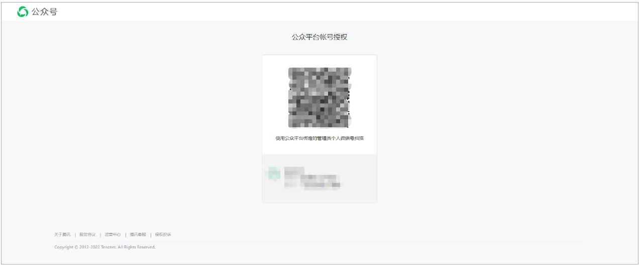 2.使用公众平台绑定的管理员个人微信号扫描二维码。