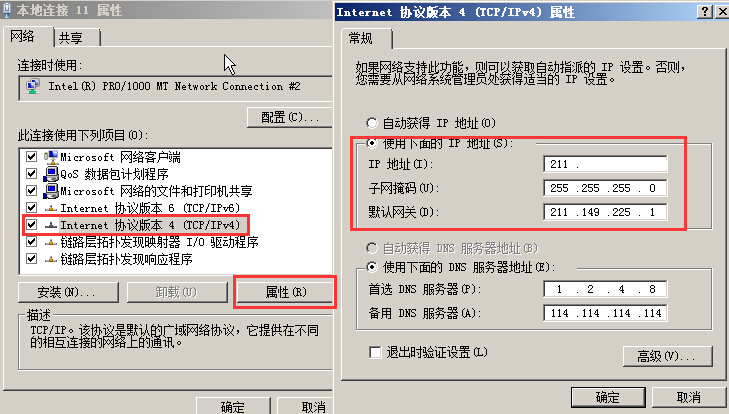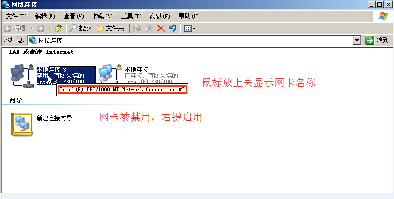 注意: 弹性云是双网卡,设备名称为2的一般是外网网卡。如上图所示设备名称Intel(R) PRO/1000 MT Network Connection #2 就是外网网卡。 2、IP地址、网关设置不正确。 注意设备名称为Intel(R) PRO/1000 MT Network Connection #2为外网网卡,右键网上邻居--属性,选中外网本地连接--右键属性--tcp/ip协议--属性